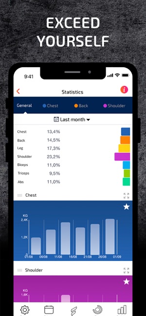 - Measure your transformation in each exercise and muscle group with clear and complete graphics, which will allow you to observe your evolution in the gym in the coming weeks, months or years.