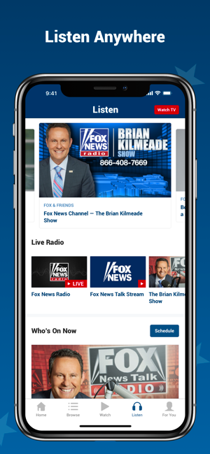 The “Listen” tab allows you to stream Fox News Radio, as well as podcasts from your favorite Fox News personalities.