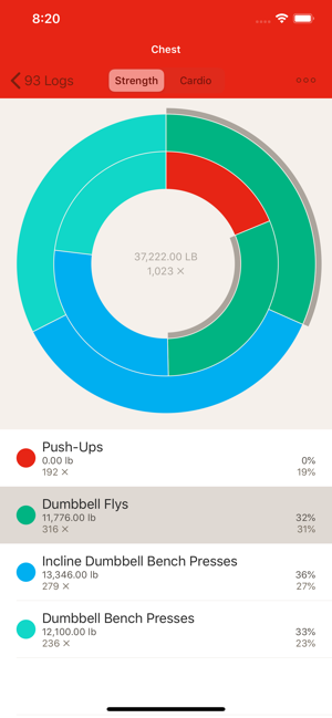 • Immediately see your exercise statistics in a configurable, interactive line graph