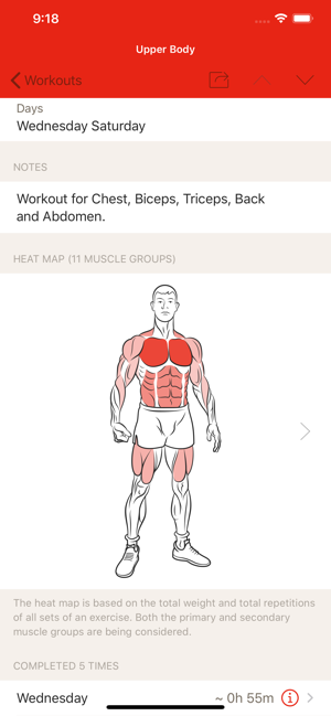 • After completing a workout, a summary shows your performance as well as your heat map and lets you analyze your progress compared to last time