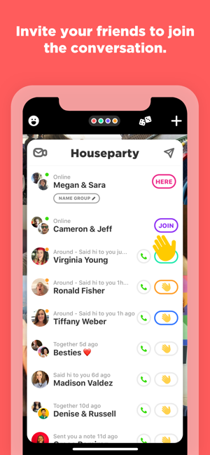 Houseparty is the face-to-face social network where you can connect with the people you care about most. The app makes connecting face to face effortless, alerting you when your friends are “in the house” and ready to chat so you can jump right into the conversation. The same goes for you opening the app! Your friends will know you’re in the app and ready to chat, so they can join you (…because rejected calls are so last year). Houseparty is truly the next best thing to hanging out in person. See your friends more often on Houseparty.