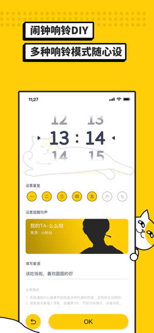 - 闹钟DIY*随心配:闹钟重复周期随你而定,让你不错过任何一个需要爱豆出现在闹钟上的机会~