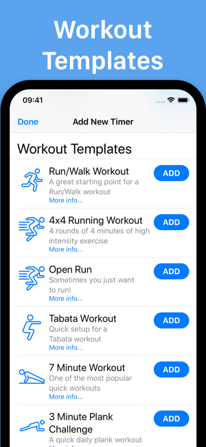• 3 timer types, 6 workout templates, and a 2 Running Training programs