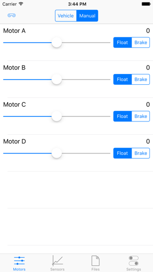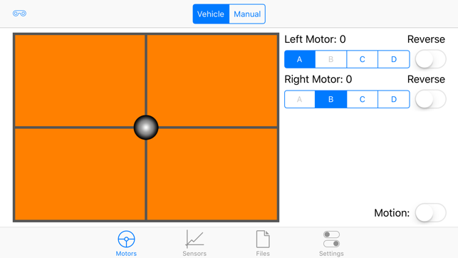 It has both manual motor control, as well as a vehicle control system that uses touch, or motion control to control differential drive robots.