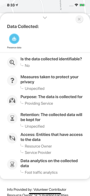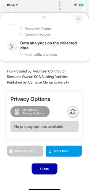 Discover and control what data is collected about you by Internet of Things technologies (or “resources”). The Internet of Things (or “IoT”) is everywhere. It consists of a myriad of devices and technologies that collect data about us - from cameras with facial recognition and other AI algorithms, to smart speakers that record what we say, or sensors that track our mobile phones to name just a few. The IoT Assistant app helps you discover and control what data is being collected by IoT resources around you - who is collecting it, who it is shared with, and for how long it is retained. New privacy regulations in the US and Europe require people who deploy IoT resources to disclose their data collection and use practices and to also give us some control over these practices such as opting in or out of them. The IoT Assistant app provides users with a single interface through which they can discover IoT resources around them and access privacy options made available to them by these resources.