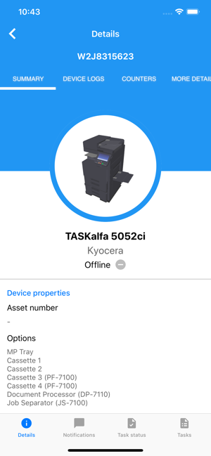 You can manage printing devices more efficiently with the KFS Mobile application. It is available to authorized Partners who use KYOCERA Fleet Services.