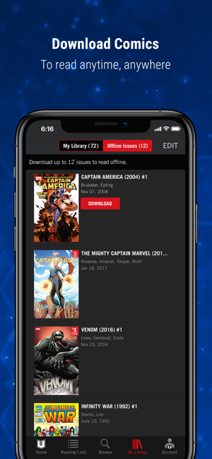 • Download up to 12 comics to read anywhere