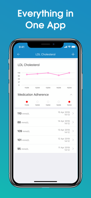 HEALTH APP INTEGRATION: Keeps track of your measurements and syncs them to HealthKit app: blood glucose, blood pressure, weight, pulse, temperature and in the US, medications from health records where available.