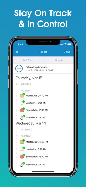 Based on your suggestions, versions 7.0 and above improve the home screen timeline to show upcoming appointments. Now when you add appointments you can easily view them in your timeline along with your meds.