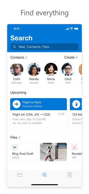 - Find everything you're looking for with our new search experience, including files, contacts, and your upcoming trips.