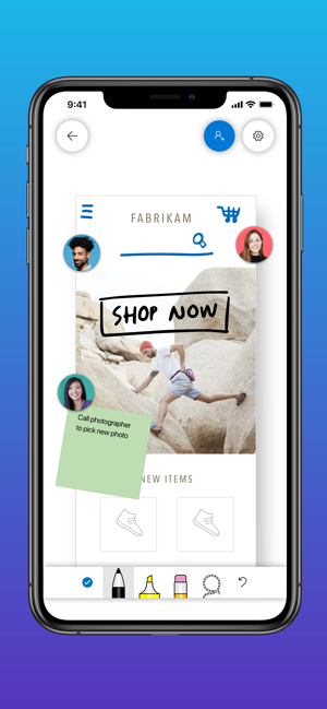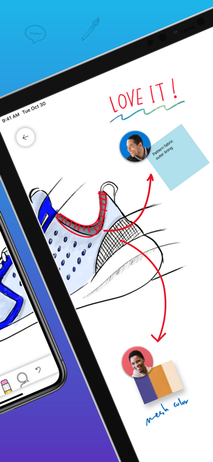 Microsoft Whiteboard brings every member of a team together, whether they’re huddled around a wall-size touchscreen or working from their own devices across the globe. On the Whiteboard canvas, you can see where others are in real time and start inking on the same area – or not. It’s about getting everyone on the same page – or board.