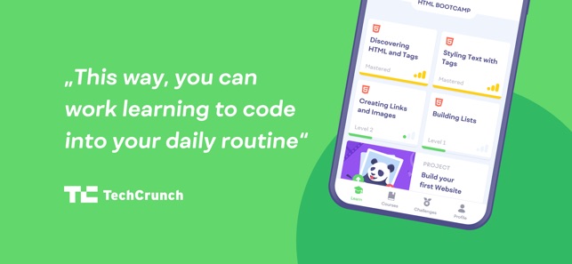 • "This way you can work learning to code into your daily routine, whenever you have a few minutes of downtime." – TechCrunch