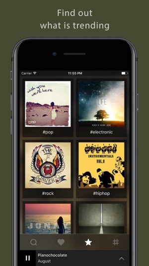 Browse music by trending songs, genres or hashtags (lots of popular music genres are available – rock, hip hop, pop, metal, EDM, chillout, jazz, classical).