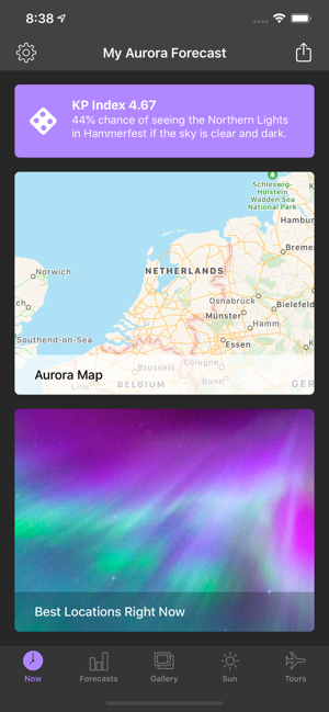 - Free push notifications when auroral activity is expected to be high.