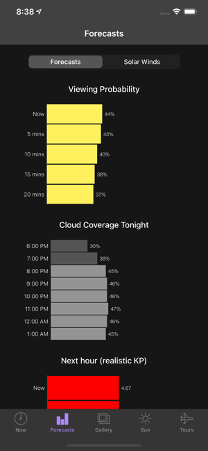 - Forecasts for the next hour, several hours and several weeks so you can plan your Northern Lights viewing long in advance (subject to weather conditions).