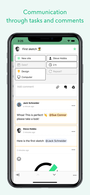 • Communicate smoothly and ditch chaotic e-mails – use task comments to exchange information with your colleagues and customers, and have all the info required in one safe system