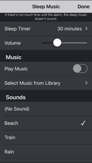 Relax and fall asleep to the sound of your favorite song or one of the preset sleep music.