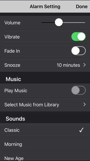I really enjoy using this alarm clock app. It has the volume setting, choice of sounds that make it easy to fall asleep to or choice of music if you prefer.. You can also select no noise. You can select the amount of time to play the sleep noise to make sure it’s long enough for you to fall asleep. Setting the alarm time is very easy which is not always the case with other apps. It’s easy to hit “snooze” or turn off when alarm sounds. It has woke me up every time I’ve set it. That’s not an easy task. If you need to set an alarm to make sure you get up at a certain time, this is the app for all ages.