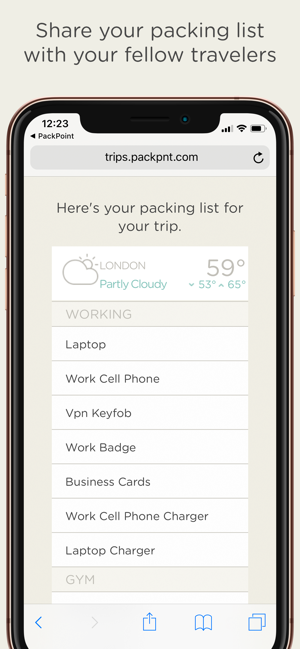 PackPoint is an intelligent packing app and packing list builder for serious travelers. PackPoint will tell you what you need to pack based on length of travel, weather at your destination, and any activities planned during your trip.