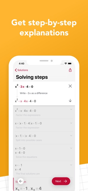 I’ve used many app in the past that are supposed to help with math. Those other ones require money after using it for a certain amount of time or have ads every 5 problems. This app is the best because it’s completely free and can help any problem. I use it daily to check my math homework and to help me with problems I don’t understand. The step-by-step instructions on how to solve it are easy to understand and help when learning a new topic. Also, you just scan the math problem you need help with. Many want the user to upload a picture. It’s so much easier to scan it. Two other features are the calculator/edit part and the notebook. The calculator/edit feature allows the user to input in problems instead of scanning them. I love this feature because sometimes I’m in a rush to do my homework and my handwriting ends up being awful. I can just type the problem in without having trouble scanning it. The notebook feature keeps a log of all the problems you did, but you can clear it if you want. In the notebook, you can star problems and the problem will be at the top of the notebook. 10/10 would recommend and have recommended to anyone that needs help. By far the best math app.