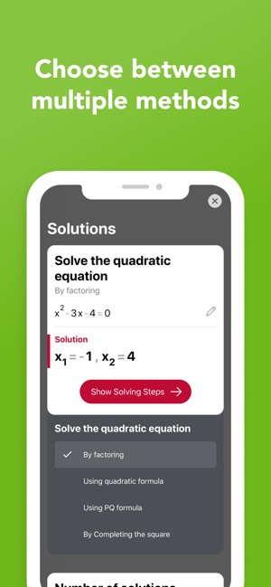 ● Scroll through multiple solving methods per problem