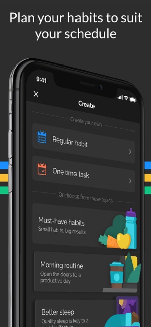 I like that you can schedule an individual habit for multiple times a day instead of having to create the same habit 3 times, each time scheduling a different time. I also enjoy how customizable it is, how you can choose the icon, color and order of the habits. My favorite thing about the app is the general scheduling. There are 3 times to schedule a habit to; morning, afternoon and evening. And you can choose between which times each of these apply. Even if I miss a habit during its schedules time, it isn't counted as missed until the day is over, which keeps my motivation for the streaks up. It's the perfect level of simplicity for me.