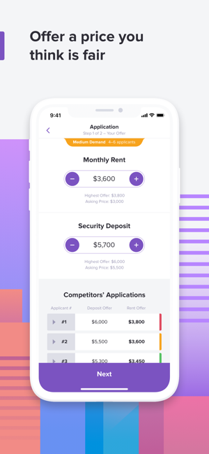 - Transparent application process with the ability to negotiate your rent and security deposit