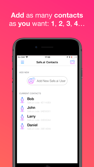 Safe.ai creates a user unique code that you can share with your contacts easily through email, sms or WhatsApp.