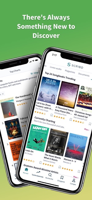 “Scribd is a massive library that's home to millions of books, audiobooks, magazines … and even sheet music. (Sheet music!)” - Mashable