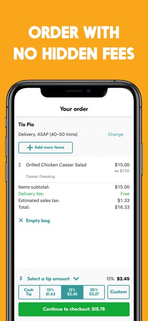 Got a go-to sushi order that’s never let you down? Tap "Express Reorder" to quickly bring a previously ordered meal straight to checkout. Craving Taco Bell? Just type “Taco Bell” into the search bar and a listing of the nearest local Taco Bell spots will pop up. All you’ve got to do is pick your place, choose your food, and place your order. It doesn’t get much easier than that.