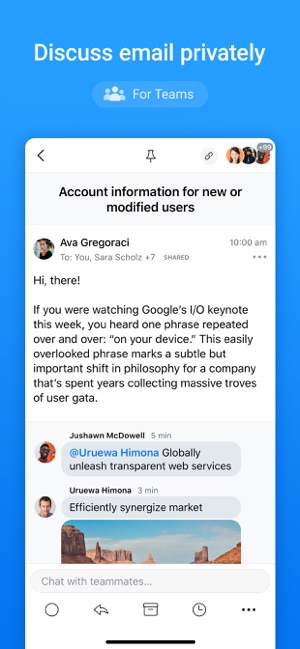 Invite teammates to discuss specific emails and threads. Ask questions, get answers, and keep everyone in the loop.