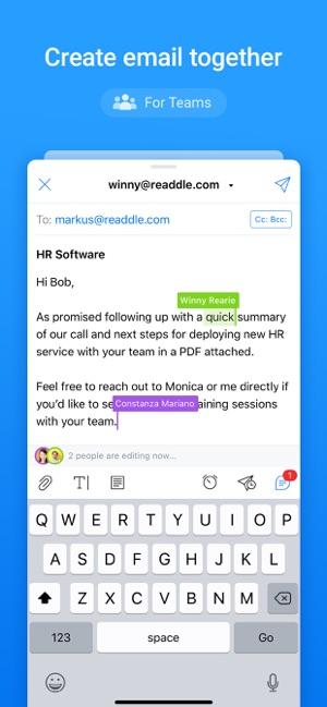 For the first time ever, collaborate with your teammates using real-time editor to compose professional emails.