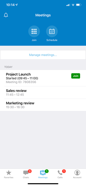 • Invite anyone to meet with you, internal or external. Participants can join from any device, their web browser, video room system or the telephone.