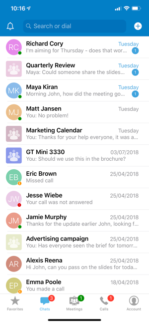 • Collaborate more effectively with the ability to escalate any chat to a video call or meeting with one touch.