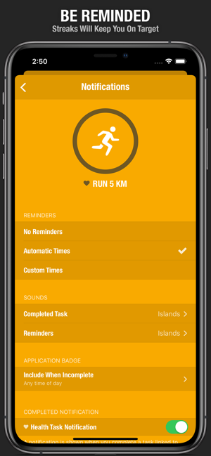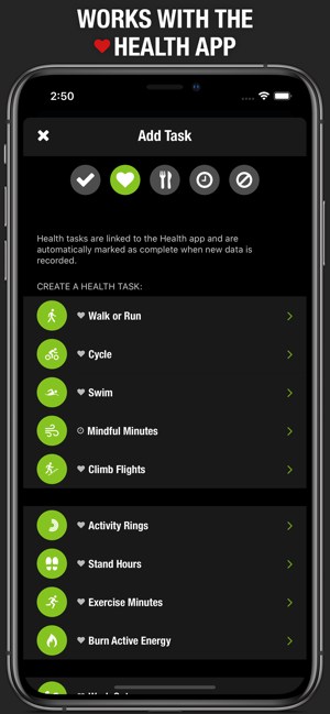 * Streaks automatically knows when you complete tasks linked to the Health app