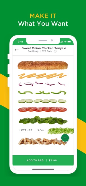 ● Customize Your Way or Order as it Comes: Like extra cheese? Us too. Customize your Footlong just like you do in the restaurant. Swap your condiments, pick your toppings, or toast your bread — the opportunities are endless. Or choose a Subway Series sandwich and leave the choices to us.