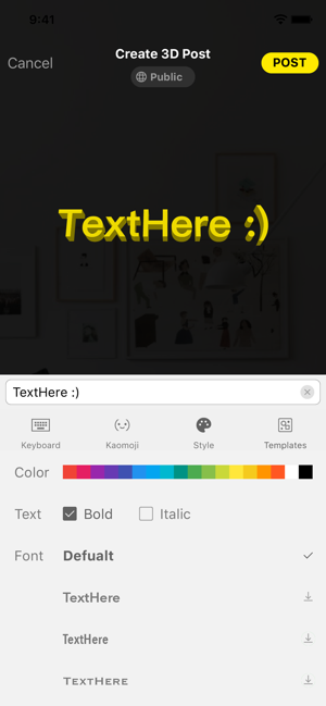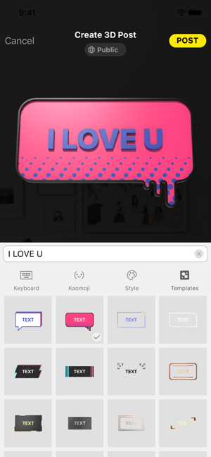 There are many templates and style can be chosen and applied for the 3D post. Change text color, bold the text, add beautiful background to the post, customize your text and let it become charming.