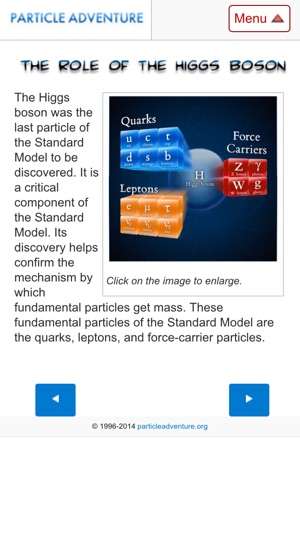 The Particle Adventure is an interactive introduction to the world of quarks, the Higgs boson, neutrinos, antimatter, the fundamental forces, extra dimensions, dark matter, accelerators and particle detectors.