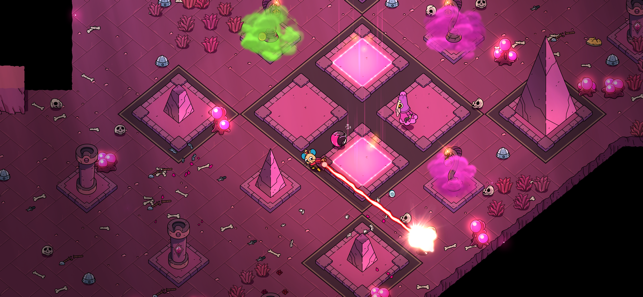 Weapons, Items, & Stickers: Wield the traditional sword and bow combo alongside the decidedly less traditional vinyl record Frisbee, magic golf club, and colossal foot from the heavens to put Mormo and her legions back on their heels. Collect and equip stickers to boost up your hero and add perks to their gear to become powerful enough to banish the wicked sorceress.