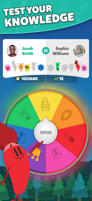 Let our friendly spinner wheel, Willy, select which questions you’ll answer from six different categories. Be the first to get the six crowns to win, but watch out for the rematch!