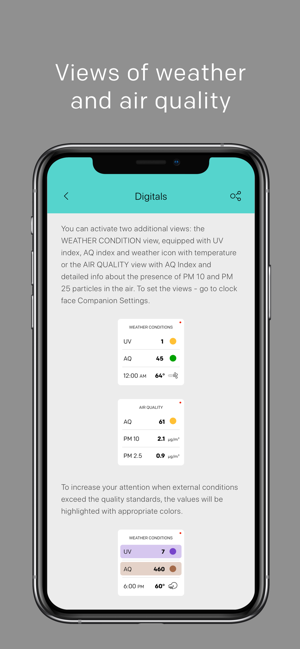 Subscribe to TTMM-S and get access to special versions of awarded TTMM-S clock faces equipped with the weather, UV index and detailed Air Quality feature for just 0.99$ per month!