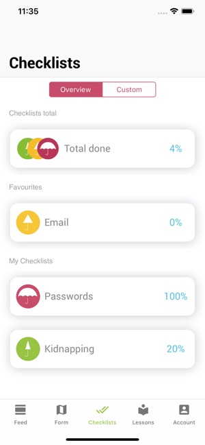 Umbrella helps you identify and respond to threats you face whenever you work, communicate, or travel. Get simple instructions to reduce your risk, even offline. Then make sure you act on them by following one of our checklists, or creating your own. Adapt your plans based on live threat alerts from trusted sources, or share incident forms with your team. Umbrella’s secure infrastructure is perfect for NGOs and people at risk, because it’s funded through grants and paid security training. All content and code is free to reuse under license conditions. You can even customise the content, or add your own. Ask how at info@secfirst.org.