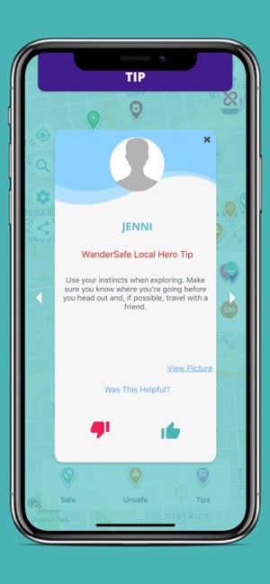 With WanderSafe you can explore new neighborhoods and cities or countries. The app will show you where there are reports of incidents you should avoid and tips from WanderSafe verified local “Heros”.