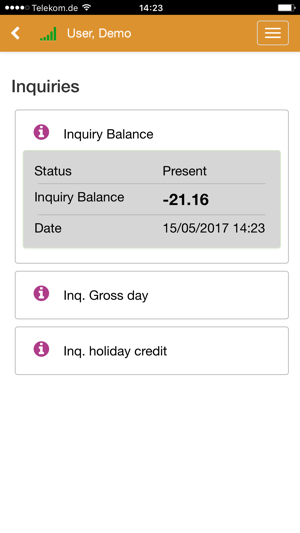 This Time & Attendance tool makes data available online throughout the world and provides an up-to-date overview at any time. Apart from bookings of presence and absence times, the tool enables time account inquiries and cost centre changes.